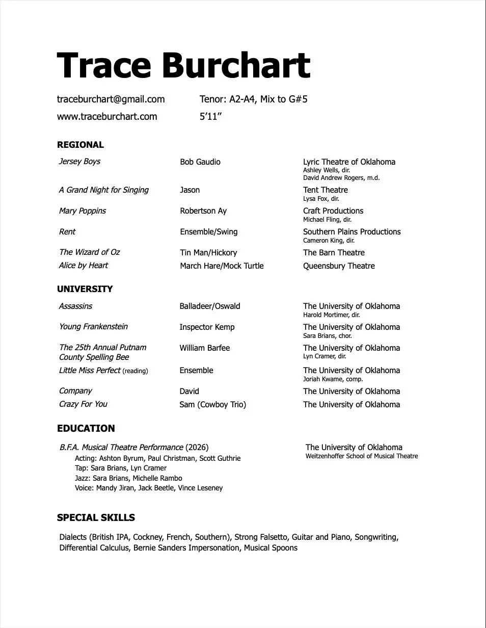 Trace will play David in OU’s production of Company! The show runs March 6-8.